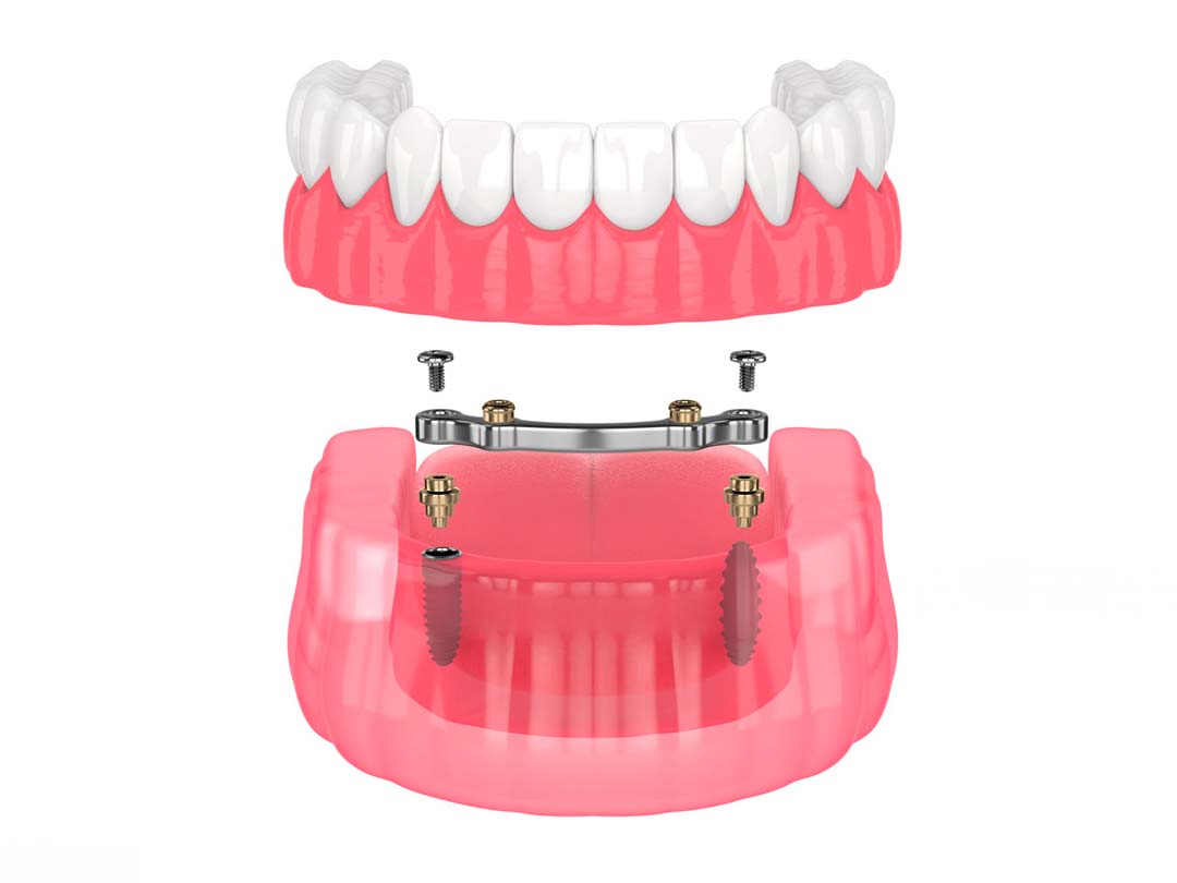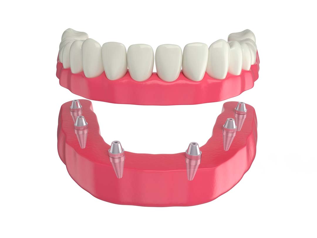 La opción más avanzada para personas con edentulismo total. Consiste en colocar 6 implantes por arcada para soportar una prótesis fija de 12 coronas, diseñada digitalmente y fabricada en materiales altamente estéticos como el zirconio o el disilicato.