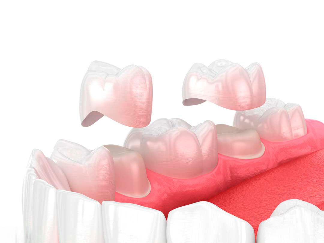 Se apoyan en los dientes adyacentes previamente tallados. Se diseñan digitalmente y se fabrican con materiales de alta estética como zirconio, metal-cerámica o disilicato de litio, que imitan a la perfección los dientes naturales.